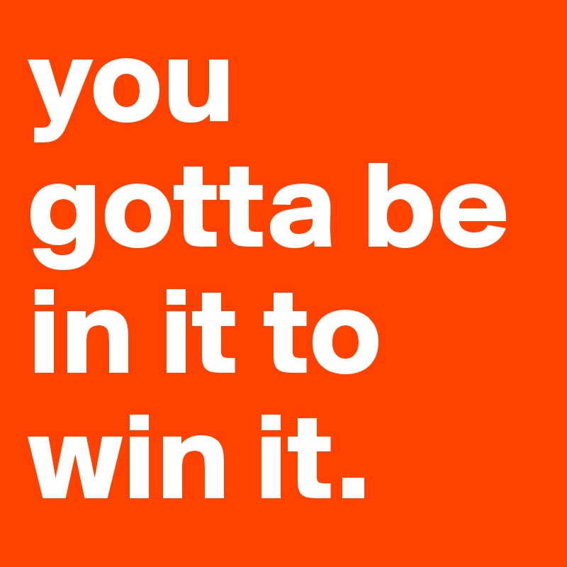 Weve found 1585 phrases and idioms matching youve got to be in it to win it. We have a game to go and we will try to win in Munich we are Barcelona and we are going to Munich to win. The Im In It 2 Win It Series Organization Exhibitors and its members truly appreciate your help and support and promise to put your sponsorship to good use.